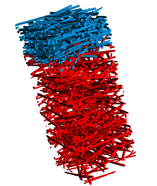 FiberGeo模塊可以通過纖維的隨機分布模式,創建虛擬的無紡布和纖維增強復合材料。纖維可以是直的或彎曲的,輪廓可以設定為不同的形狀(圓形、橢圓形、矩形、纖維素等),也可以設定纖維的朝向和纖維參數的分布等等。